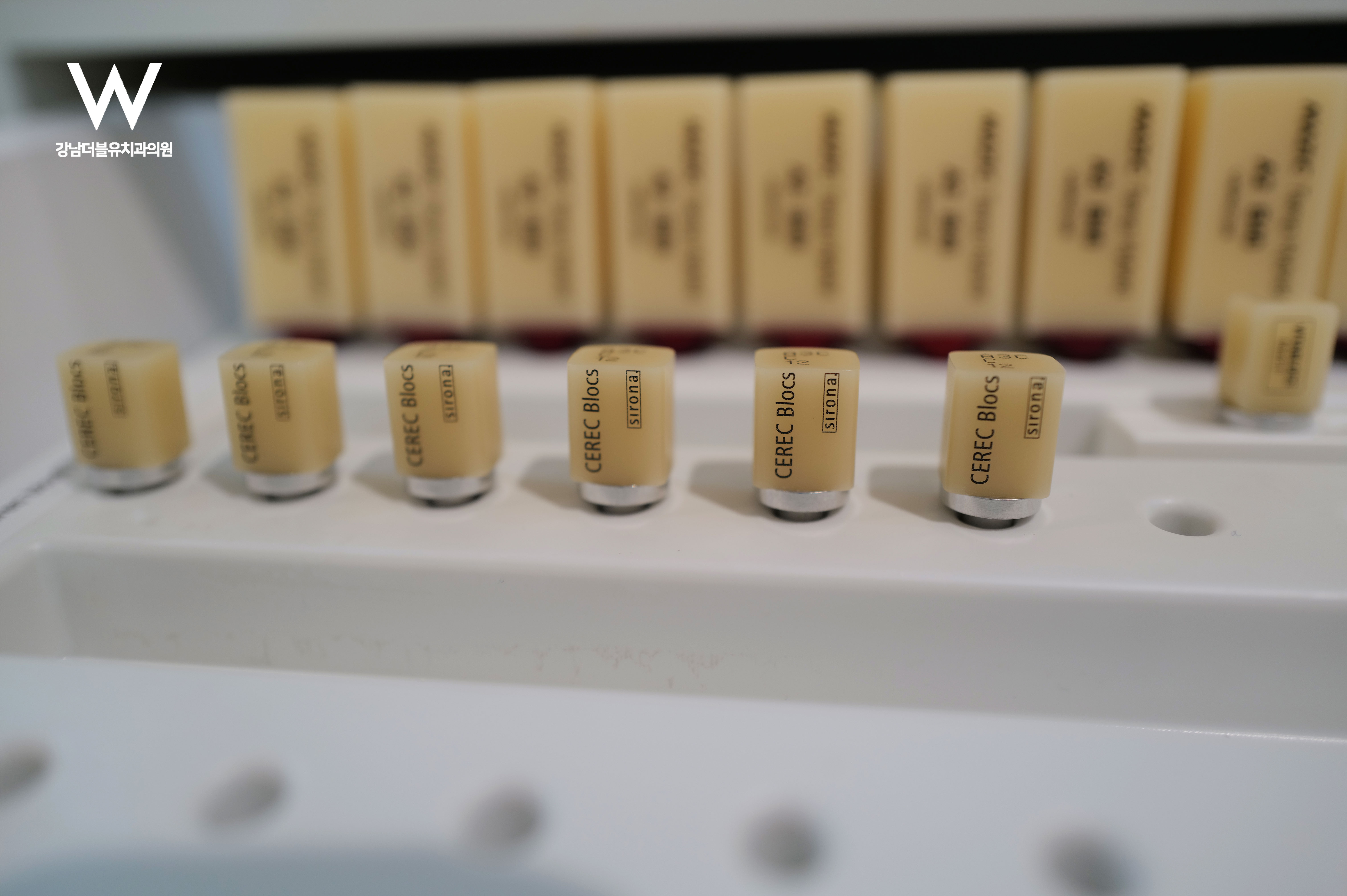 디지털 방식은 세렉(CEREC)프라임 밀을 비롯해 여러 밀링 기계로 블록을 깎아서 만드는 방식이에요.