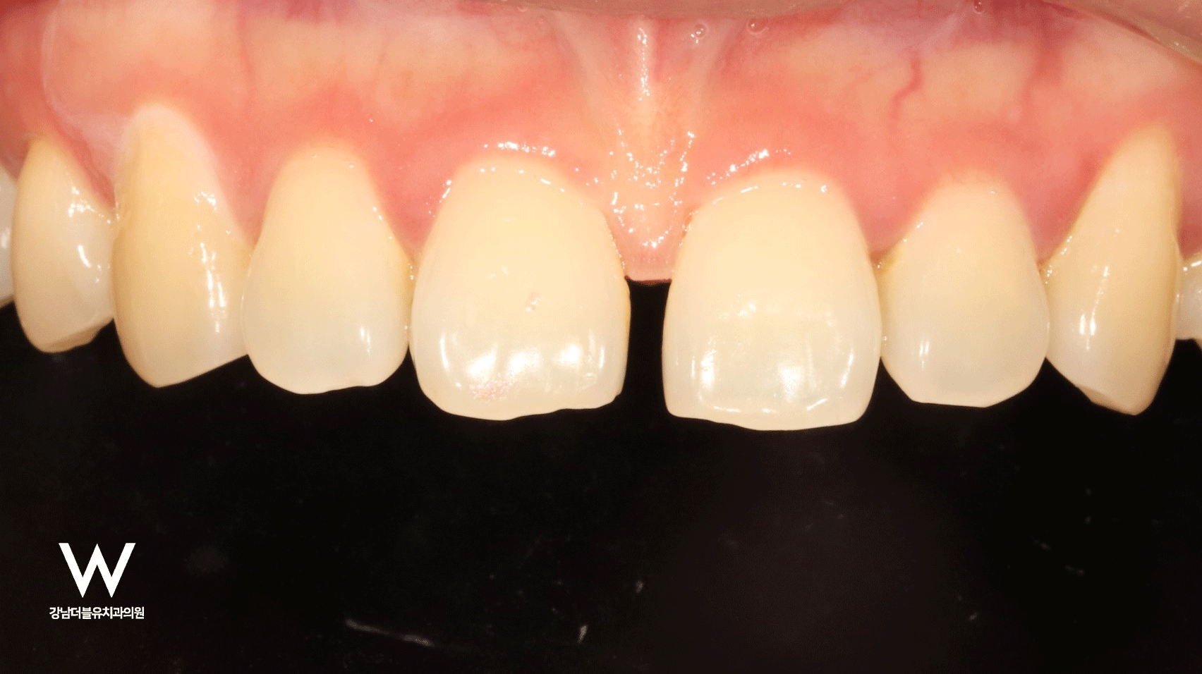 벌어져 있던 앞니 사이 공간이 자연스럽게 메워지면서 환자분의 미소가 훨씬 환해졌습니다.