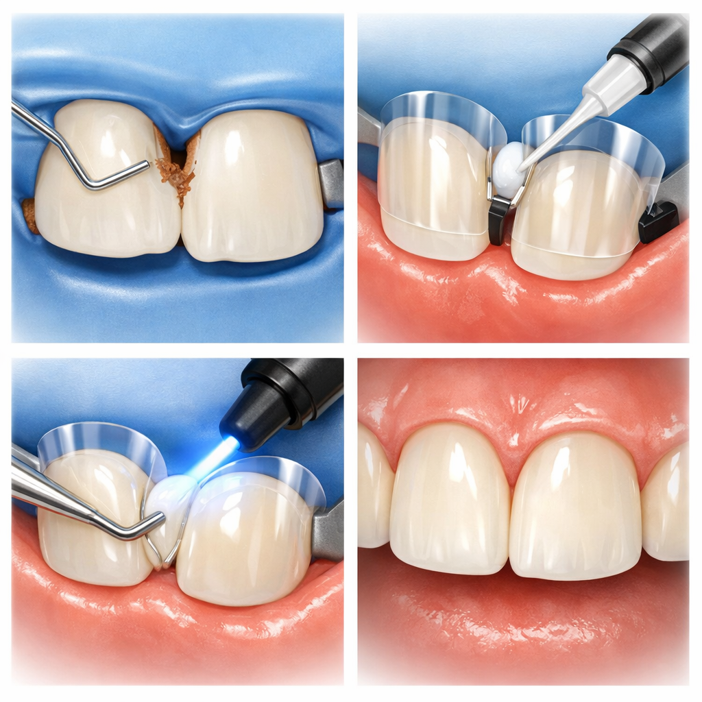 3. 바이오클리어 시술**: 특수 매트릭스를 이용해 치아 사이 공간을 선택한 복합레진으로 정밀하게 채워나갔습니다.