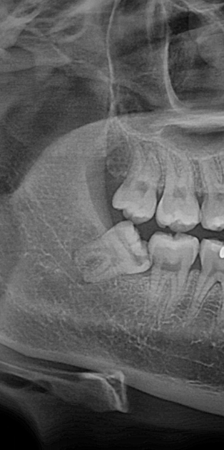 반면 뼈 안에 완전히 파묻혀 있는 사랑니는 이야기가 다릅니다.