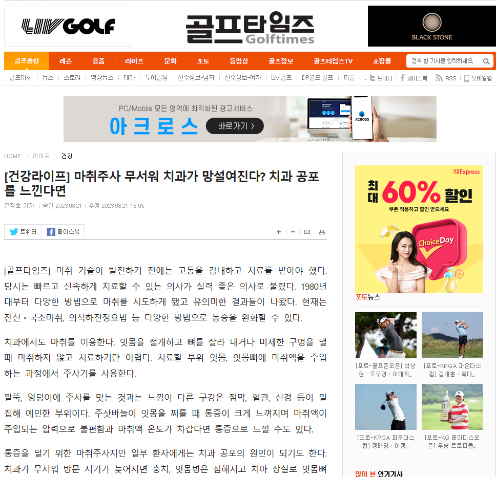 [건강라이프] 마취주사 무서워 치과가 망설여진다? 치과 공포를 느낀다면 - 골프타임즈