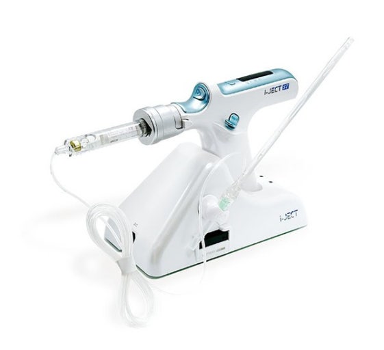 무통 마취기로 마취액을 천천히 주입하면 통증을 최소화할 수 있습니다.